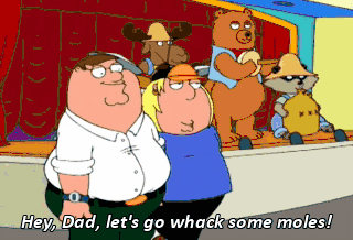 Hey, Dad, let's go whack some moles! Now, Chris, we're not here for fun. Now your mom is counting on us to drop off the deposit. So, uh, let's just deliver the check and... Hong Kong Phooey!