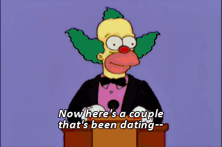 Now here's a couple that's been dating-- carbon dating! Grampa Simpson and Agnes Skinner! Sweet Toledo! What's keeping that dress on? The collective will of everyone in this room! Ha-ha!
