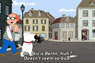 So, this is Berlin, huh? Doesn't seem so bad. Dear God, this place is nightmarish. Look at the offensive way they draw Jewish people. It's here. The uranium lab is in here.