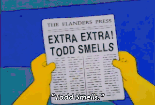 "Todd Smells." Oh, I already knew that. Look at the other side. Mmm. Ohh. Okay, let's see if we've learned anything.