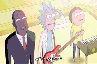 ALL: Ice-T?! That's right. It's me -- Ice-T. I care now. You made me care more. With all due respect, I'd like to hearwhat Rick and Marty have to play. What do you say, Rick? I say, let's do it!