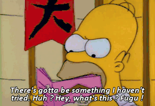 There's gotta be something I haven't tried. Huh ? Hey, what's this ? Fugu ! It is blowfish, sir. But I should warn you that one-- Come on, pal. Fugu me !