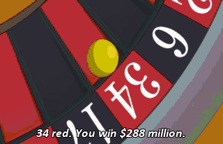 34 red. You win $288 million. (ALL CLAMOR ENTHUSIASTICALLY)