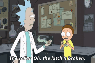 The collar. Oh, the latch is broken. It won't latch closed around my neck. - Oh, are you kidding me? - Geez, what's going on?