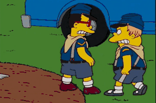 Pound him, Milhouse. You talk pretty tough for a man without health insurance. I'm on federal assistance. Aaah! You lay off my girlfriend's ex-husband.