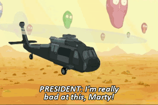 PRESIDENT: I'm really bad at this, Marty! There are way too many buttons in this thing!