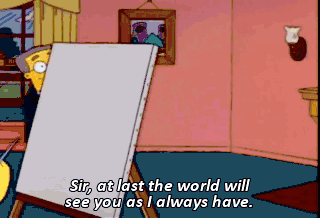 Sir, at last the world will see you as I always have. Yes, yes, yes. Now don't be stingy with the blush, Smithers. Now you, paint ! Mmm ! Honey, I'm home ! There's an original sentiment.