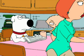 Don't move! aah! A little helP? HEy, It's Glen Quagmire, the wacky next- door neighboR. What's he up to this tiME? I'm going to work!