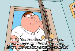 Lois, the Drunken Clam's been taken over by a bunch of lousy, limey, tea-sucking British bastards!