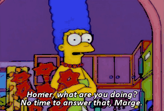 Homer, what are you doing? No time to answer that, Marge.