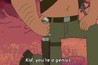 Kid, you're a genius. Are you mad?! Everybody, in here! Hey, Gonorrhea! How's this for a burning sensation? Huh.