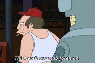 This here's our scab foreman. Flexo? Bender? Hey, sorry you got sent to that South American Turkish prison...