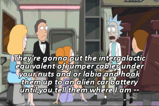 They're gonna put the intergalactic equivalent of jumper cables under your nuts and or labia and hook them up to an alien car battery until you tell them where I am --
