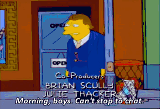 Morning, boys. Can't stop to chat.