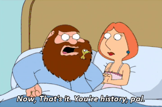 Now, That's it. You're history, pal. No bird frenches my wife and gets away with it!
