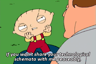 If you won't share your technological schemata with me peaceably,