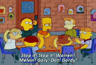 Stop it! Stop it! Warren! Melvin! Gary! Dot! Gordy! Look, lady, I'm supposed to be in the fourth grade. Sounds to me like someone's got a case of the "s'pose'das." Warren!