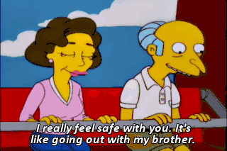 I really feel safe with you. It's like going out with my brother.
