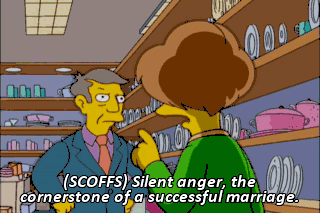 (SCOFFS) Silent anger, the cornerstone of a successful marriage.