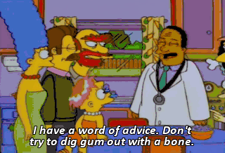 I have a word of advice. Don't try to dig gum out with a bone.
