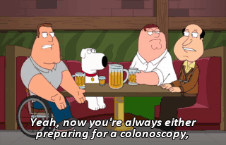 Yeah, now you're always either preparing for a colonoscopy,