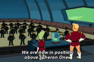 We are now in position above Spheron One. This is the moment we were training for all yesterday afternoon. And now for the battle plan. As you all know the key to victory is the element of surprise. Surprise!