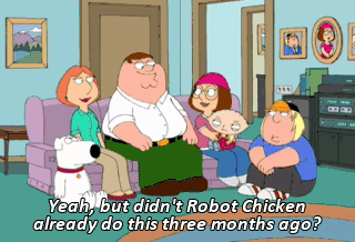 Yeah, but didn't Robot Chicken already do this three months ago? I wouldn't worry about it, Chris. I don't think people are even aware of that show's existence.
