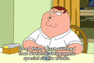 Good thing I just watched that National Geographic special on fire trucks. NARRATOR: A solitary killer, the fire truck stalks its prey.