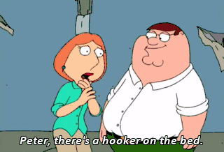Peter, there's a hooker on the bed. Hi. Stand perfectly still, Lois. Their vision is based on movement. Where did you go?