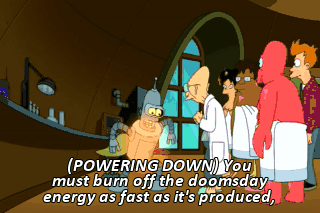 (POWERING DOWN) You must burn off the doomsday energy as fast as it's produced, or it will build to critical levels!
