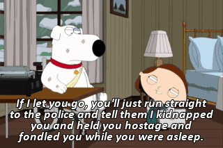 If I let you go, you'll just run straight to the police and tell them I kidnapped you and held you hostage and fondled you while you were asleep.