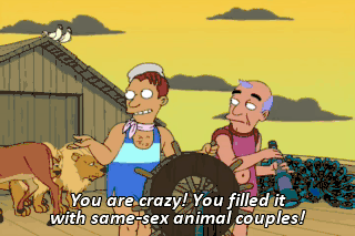 You are crazy! You filled it with same-sex animal couples! Hey, there are parts of the Bible I like and parts I don't like!