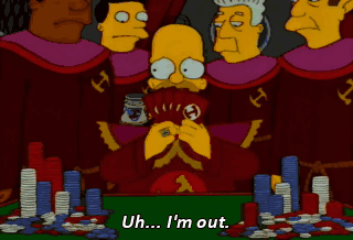 Uh... I'm out. No, no, no, no, no. Homer, you have a royal, uh, sampler. Oh, I win again, don't I? Whoo-hoo.