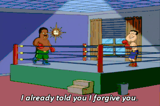 I already told you I forgive you. No, No, I feel like I got off too easy. All right. If you insist. You, uh, wanna ring the bell, Apollo? All right. Ding, ding.