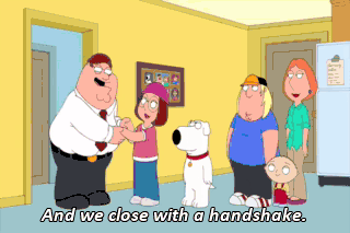 And we close with a handshake. And all in time for my big bike ride announcement. Who the fuck is this queer? That's you, Peter, alcohol-free.