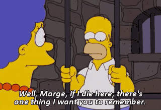 Well, Marge, if I die here, there's one thing I want you to remember. Don't buy any videotapes in England! They won't work in our VCR! (SOBBING)