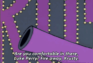 Are you comfortable in there, Luke Perry? Fire away, Krusty.