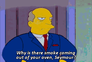 Why is there smoke coming out of your oven, Seymour? Uh-- Oh. That isn't smoke. It's steam. Steam from the steamed clams we're having. Mmm. Steamed clams. Whew.