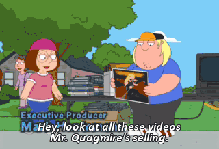 Hey, look at all these videos Mr. Quagmire's selling.