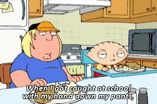 When I got caught at school with my hand down my pants, I had to keep it there for a whole week. Ha! What a week!