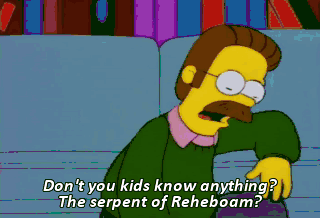 Don't you kids know anything? The serpent of Reheboam? The well of Zohassadar? The bridal feast of Bethchedruharazzeb? That's the kind of thing you should start learning at baptism.