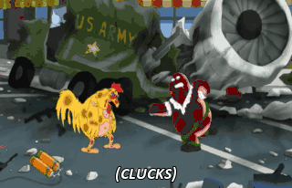 (CLUCKS) (PETER SCREAMING) (GROANING)
