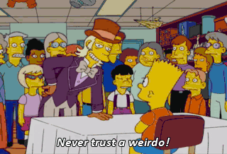 Never trust a weirdo! Azoot! I'm stuck on a nail! (CHUCKLING) Oh, God, that's painful. (GROANS) I can't feel my... (WHISTLE)