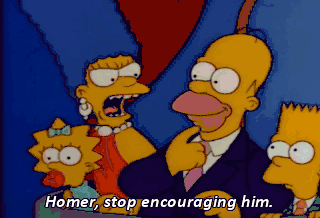 Homer, stop encouraging him. Don't stifle the boy, Marge. - We're supposed to encourage him. - Shush !