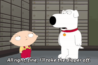 All right, fine, I'll take the diaper off. That doesn't really solve our problem, now, does it? Yes, it does. No, it doesn't though, really. See, you're not really thinking this through.