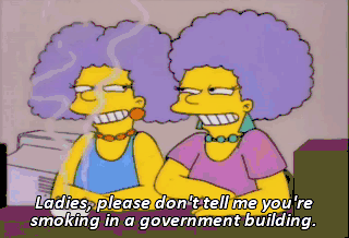 Ladies, please don't tell me you're smoking in a government building. Because that is precisely the kind of infraction... that can cost a couple of sisters their promotion.