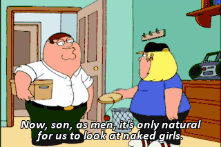 Now, son, as men, it's only natural for us to look at naked girls. Every man does it, even Mr. Rogers. Hello, neighbor. ohhh! But peeping can be dangerous, so I brought you this.