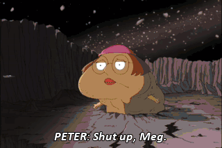PETER: Shut up, Meg. (CAWING) All right. Let's take a break. Your back's getting all sweaty. Sorry. Does that. All right. Now, let's go over what we've learned. Naked chicks. Best?