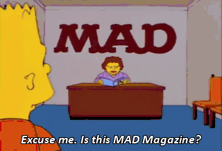 Excuse me. Is this MAD Magazine? No, it's Mademoiselle. We're buying our sign on the installment plan.