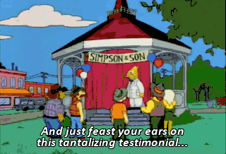 And just feast your ears on this tantalizing testimonial... from my own flesh and blood, the son who puts the fun in Simpson and Son, my son, Barney! I used to be a fat, disgusting slob.
